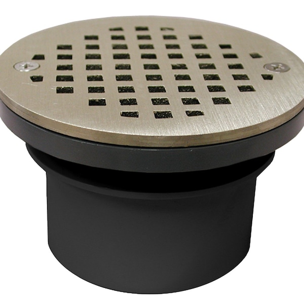 3in. PVC Inside Pipe Fit Drain Base with 2in. Plastic Spud and 4in. Nickel Bronze Strainer