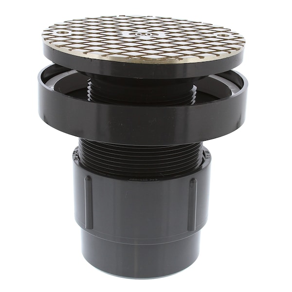 3inX4in LevelBest Complete Pipe Fit Cleanout System, 3in Plastic Spud, 6in Nickel Bronze Cover