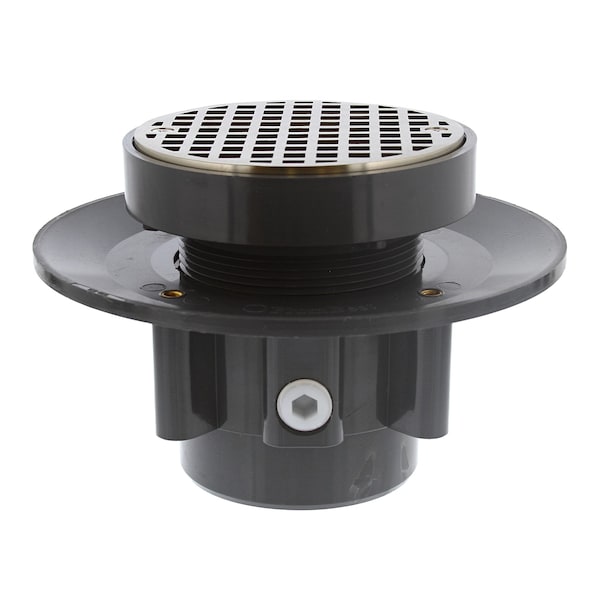 3X4in LevelBest Complete Heavy Duty Slab Drain System, 3in Plastic Spud, 5in Nickel Bronze Strainer