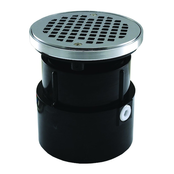 4in ABS Over Pipe Fit Drain Base with 3-1/2in Plastic Spud and 5in Chrome Plated Strainer with Ring