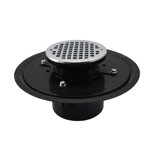 4in. Heavy Duty ABS Drain Base with 3-1/2in. Plastic Spud and 5in. Chrome Plated Strainer
