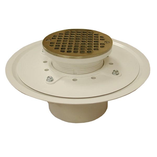 4in. Heavy Duty PVC Drain Base with 3-1/2in. Plastic Spud and 5in. Nickel Bronze Strainer