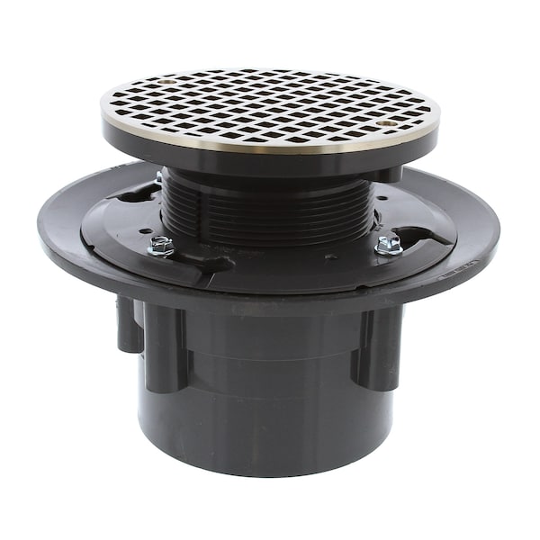 4in LevelBest Complete Heavy Duty Drain System, 3-1/2in Plastic Spud, 6in Nickel Bronze Strainer