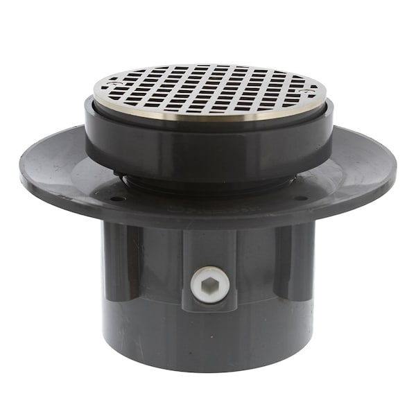 4in LevelBest Complete Heavy Duty Slab Drain System, 3in Plastic Spud, 5in Nickel Bronze Strainer