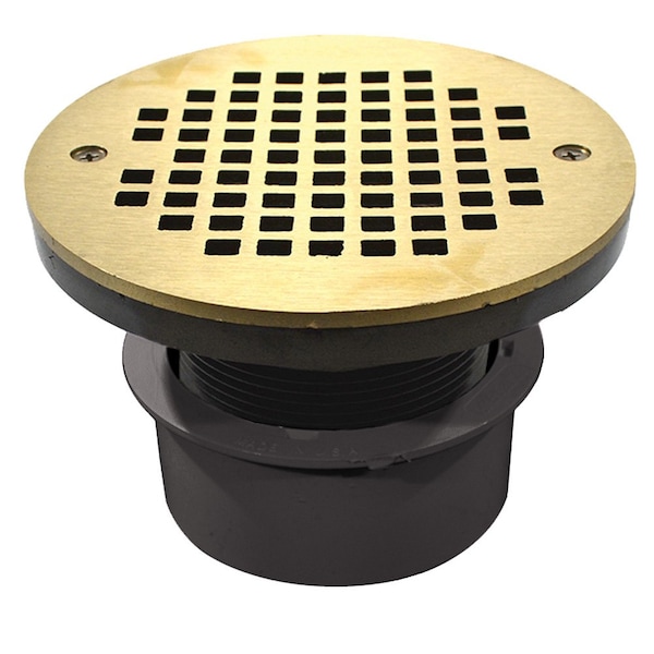 4in. PVC Inside Pipe Fit Drain Base with 3in. Plastic Spud and 6in. Nickel Bronze Strainer