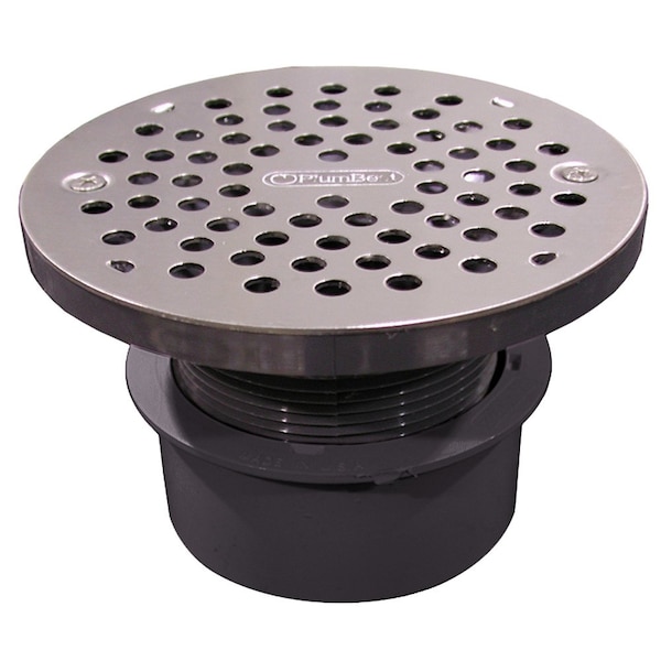 4in. PVC Inside Pipe Fit Drain Base with 3in. Plastic Spud and 6in. Stainless Steel Strainer