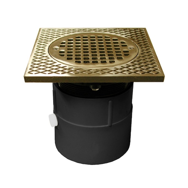 4in. PVC Over Pipe Fit Drain Base with 4in. Plastic Spud and 5in. Nickel Bronze Strainer