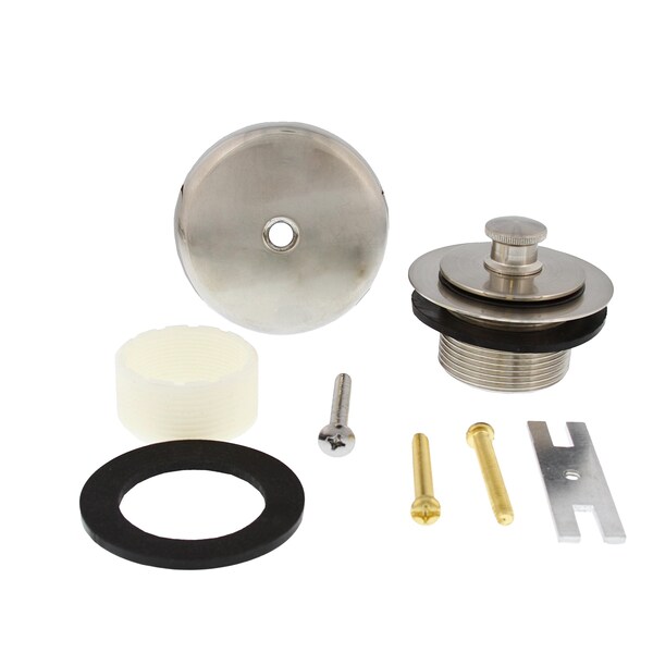 Brushed Nickel One-Hole Friction Lift Tub Drain Trim Kit, Includes Two-Hole Conversion Bar