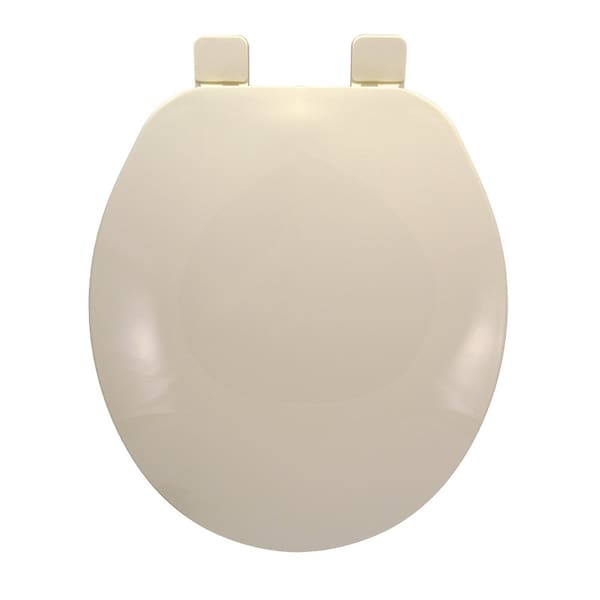 Builder Grade Plastic Toilet Seat, Biscuit, Round Closed Front with Cover
