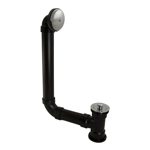 Chrome Plated One-Hole Lift and Turn Bath Waste Kit, Direct T-Waste Full Kit, Black Plastic