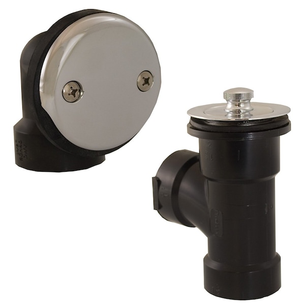 Chrome Plated Two-Hole Lift and Turn Bath Waste Kit, Direct T-Waste Half Kit, Black Plastic