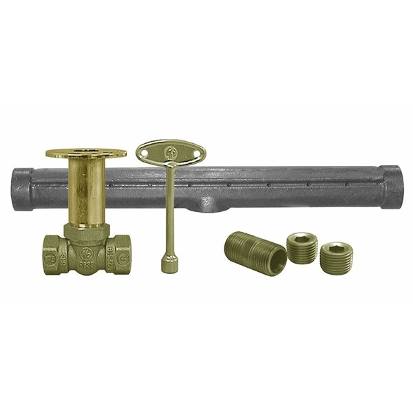 Polished Brass Straight Log Lighter Valve with T-Burner for Natural Gas