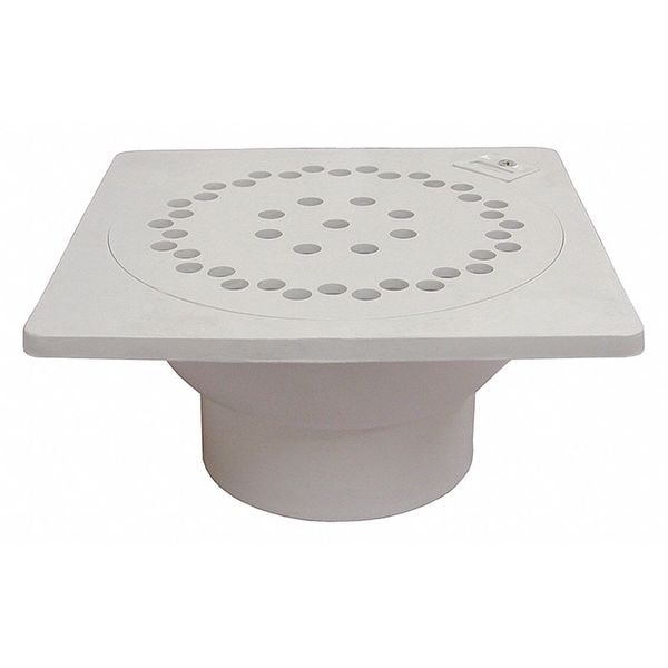 Square PVC 9"X9" Bell Trap Drn, 3"X4" Outlet, PVC, Pipe