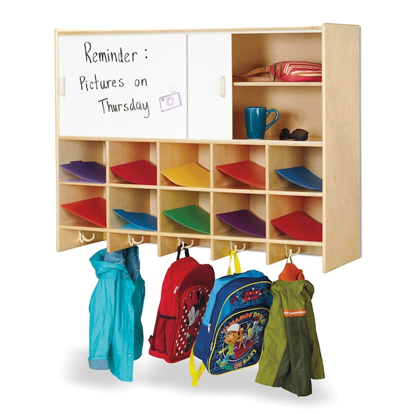 The Jonti-Craft 10 Section Wall Mount Coat Locker with Storage is a versatile and practical storage solution for any classroom, daycare, or playroom. This coat locker is designed to keep coats, backpacks, and personal belongings organized and easily accessible for children. Featuring a sturdy and durable construction, this coat locker is built to withstand the daily wear and tear of a busy environment. It is made from high-quality materials that are resistant to scratches, dents, and stains, ensuring its longevity and functionality for years to come. With its 10 spacious sections, this coat locker provides ample storage space for multiple children. Each section is equipped with a double hook, allowing children to hang their coats and bags neatly. The open design of the locker makes it easy for children to identify and retrieve their belongings independently, promoting a sense of responsibility and organization. In addition to the coat storage, this locker also includes a storage shelf on top, providing extra space for hats, gloves, and other accessories. The shelf is perfect for keeping small items within reach, eliminating the need for additional storage units. The wall-mount design of this coat locker maximizes floor space, making it ideal for smaller classrooms or play areas. It can be easily mounted on any wall, ensuring a secure and stable installation. Please note that this particular model does not include cubbie-trays. However, the absence of cubbie-trays allows for more flexibility in storage options. Teachers or caregivers can use bins, baskets, or other containers to customize the storage compartments according to their specific needs. Overall, the Jonti-Craft 10 Section Wall Mount Coat Locker with Storage is a practical and durable solution for keeping coats and personal belongings organized in any educational or childcare setting. This item may incur additional shipping charges due to its weight or size.