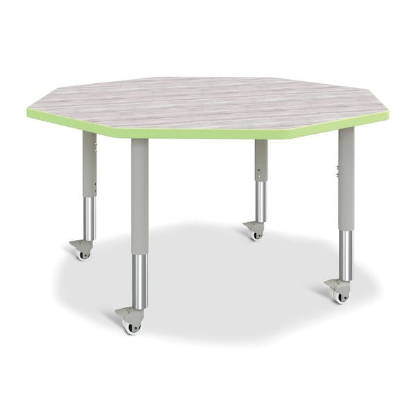 Berries Octagon Activity Table, 48 in. x 48 in., Mobile, Driftwood Gray/Key Lime/Gray