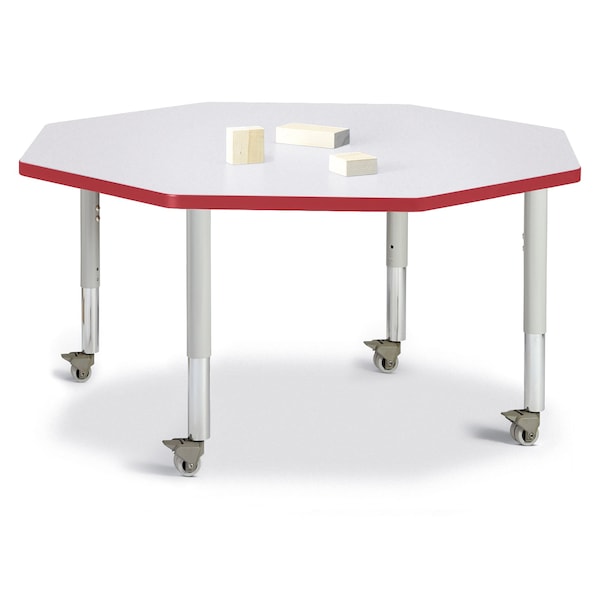 Berries Octagon Activity Table, 48 in. x 48 in., Mobile, Freckled Gray/Red/Gray