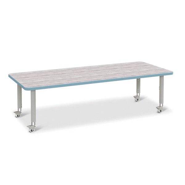 Berries Rectangle Activity Table, 30 in. x 72 in., Mobile, Driftwood Gray/Coastal Blue/Gray