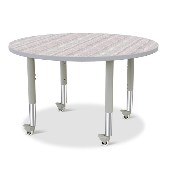 Berries Round Activity Table, 42 in. Diameter, Mobile, Driftwood Gray/Gray/Gray