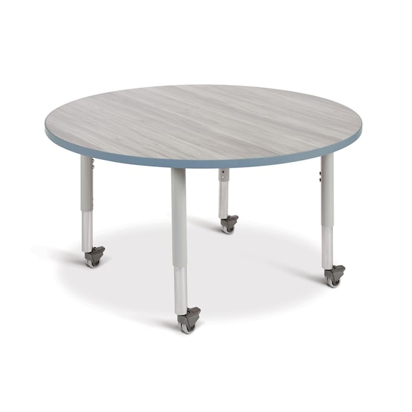 Berries Round Activity Table, 48 in. Diameter, Mobile, Driftwood Gray/Coastal Blue/Gray