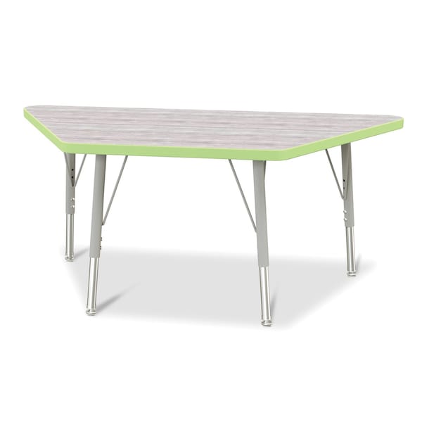 Berries Trapezoid Activity Table, 24 in. x 48 in., E-height, Driftwood Gray/Key Lime/Gray