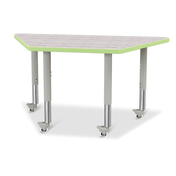 Berries Trapezoid Activity Table, 24 in. x 48 in., Mobile, Driftwood Gray/Key Lime/Gray