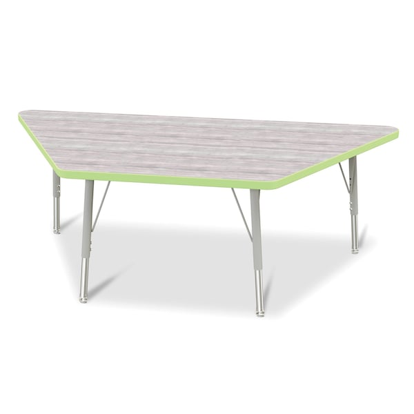 Berries Trapezoid Activity Table, 30 in. x 60 in., E-height, Driftwood Gray/Key Lime/Gray
