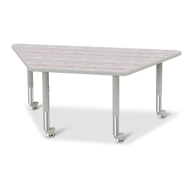 Berries Trapezoid Activity Table, 30 in. x 60 in., Mobile, Driftwood Gray/Gray/Gray