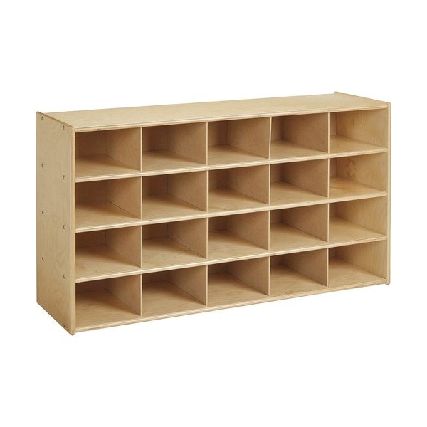 Cubby storage unit without trays lets you maximize your classroom storage needs. Rounded edges allow children to play safely without getting hurt by sharp edges or corners. Durable laminate features an easy-to-clean surface. Thermo-fused edgebanding helps seal out moisture.
