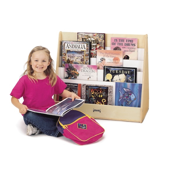 The Jonti-Craft Double Sided Pick-a-Book Stand is a versatile and practical addition to any classroom, library, or playroom. Designed with young readers in mind, this book stand offers a convenient and accessible way to display and organize books, encouraging children to explore the world of literature. Crafted with durability and functionality in mind, this book stand features a double-sided design, allowing for maximum storage capacity. With six shelves on each side, there is ample space to showcase a wide variety of books, ensuring that children have a diverse selection to choose from. The shelves are also adjustable, allowing for customization based on the size and thickness of the books. Constructed from high-quality materials, this book stand is built to withstand the rigors of daily use. The sturdy wooden frame provides stability and durability, ensuring that it will last for years to come. The smooth edges and rounded corners make it safe for children to use, minimizing the risk of accidents or injuries. In addition to its practical design, the Jonti-Craft Double Sided Pick-a-Book Stand is also aesthetically pleasing. The natural wood finish adds a touch of warmth and elegance to any space, while the clear acrylic panels on each side allow for easy visibility of the book covers, enticing children to explore and engage with the books. With its versatile design and durable construction, the Jonti-Craft Double Sided Pick-a-Book Stand is an excellent investment for any educational or recreational setting. It promotes literacy, organization, and independence, while also enhancing the overall aesthetic appeal of the space.