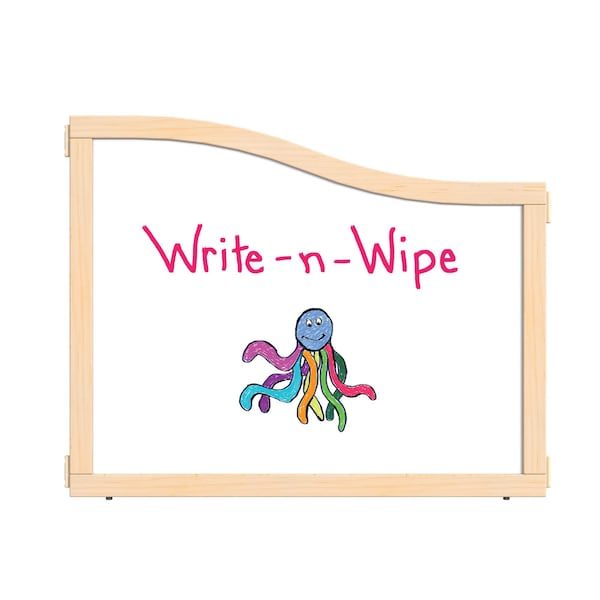 The KYDZ Suite Cascade Panel - E to T-height - 36 in. Wide - Write-n-Wipe is a versatile and functional addition to any educational or play environment. This panel is designed to be used with the KYDZ Suite system, allowing for endless configuration possibilities. Measuring 36 inches wide, this panel is perfect for creating dividers, partitions, or walls within a classroom, daycare, or play area. It is constructed with high-quality materials to ensure durability and longevity, making it suitable for heavy use in busy environments. One of the standout features of this panel is its write-n-wipe surface. This allows children to engage in creative activities, practice writing skills, or simply doodle to their heart's content. The write-n-wipe surface is easy to clean, ensuring that the panel remains in pristine condition for years to come. The E to T-height design of this panel means that it can be adjusted to different heights, accommodating children of various ages and sizes. This flexibility makes it an excellent investment for schools or facilities that cater to children of different age groups. The KYDZ Suite Cascade Panel - E to T-height - 36 in. Wide - Write-n-Wipe is not only functional but also aesthetically pleasing. Its sleek design and neutral color blend seamlessly with any existing decor or KYDZ Suite components. Overall, this panel offers endless possibilities for creating engaging and interactive spaces for children. Its durability, versatility, and write-n-wipe surface make it a valuable addition to any educational or play environment.