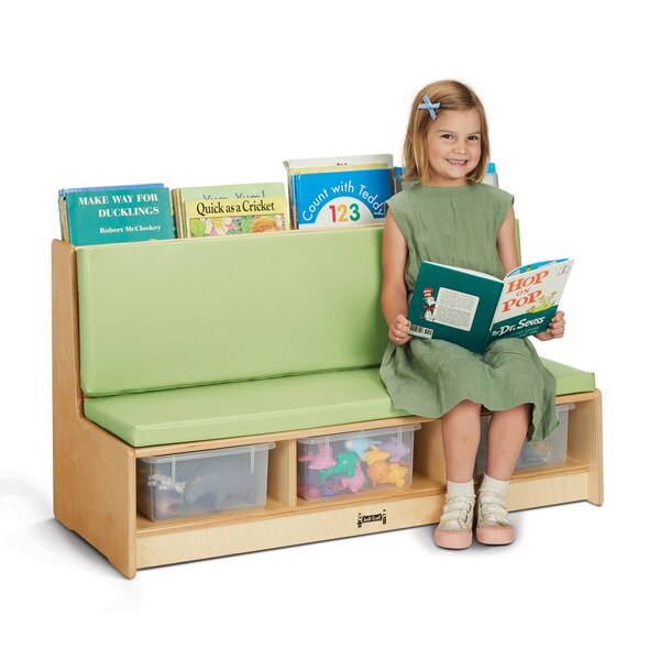The Jonti-Craft Literacy Couch in Key Lime is a versatile and vibrant addition to any classroom or reading area. Designed with both comfort and functionality in mind, this couch provides a cozy and inviting space for children to engage in literacy activities, fostering a love for reading and learning. Crafted with high-quality materials, this literacy couch is built to withstand the rigors of daily use in a busy educational environment. The sturdy wooden frame ensures durability and stability, while the dense foam padding offers exceptional comfort for extended periods of sitting or lounging. The vibrant key lime color adds a pop of freshness and liveliness to any space, creating an engaging and stimulating atmosphere. Featuring a spacious seating area, this couch can comfortably accommodate multiple children, encouraging collaborative learning and social interaction. The wide armrests provide a convenient surface for children to rest books, tablets, or other learning materials, keeping everything within easy reach. The Jonti-Craft Literacy Couch is not only visually appealing but also highly functional. It is equipped with a built-in book display shelf at the back, allowing children to easily access and select their favorite books. The open design of the shelf promotes organization and encourages children to take ownership of their reading choices. With its combination of comfort, durability, and functionality, the Jonti-Craft Literacy Couch in Key Lime is an excellent investment for any educational setting. It creates an inviting and engaging space for children to explore the world of literacy, fostering a lifelong love for reading and learning. This item may incur additional shipping charges due to its weight or size.