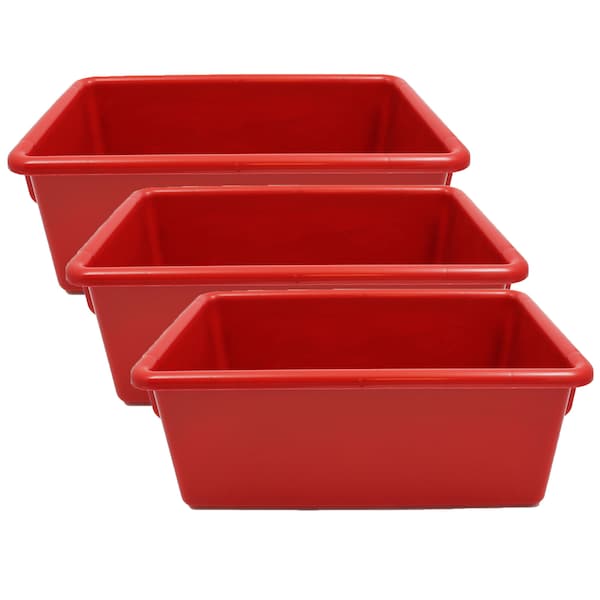 Super strong bins are ideal for storage in the classroom. Indoor use only. Non-toxic and impact resistant. Matching lids available. Cubbie-Trays measure 8.6"W x 13.5"D x 5.3"H. Sold as 3 cubbie trays.