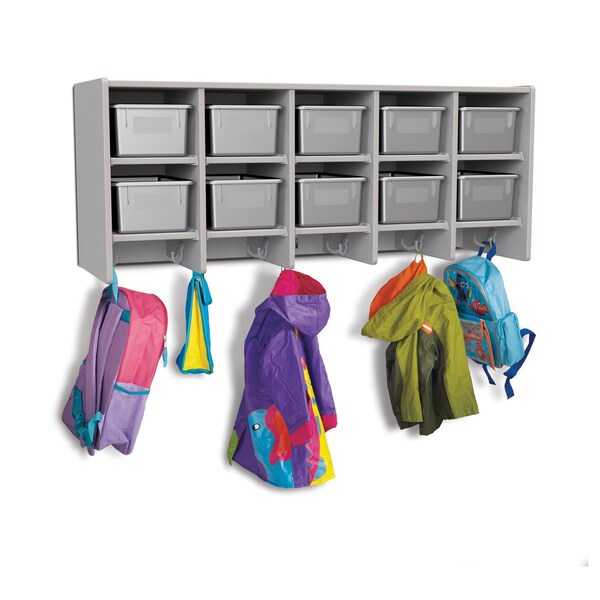 Rainbow Accents 10 Section Wall Mount Coat Locker, with Trays, Gray