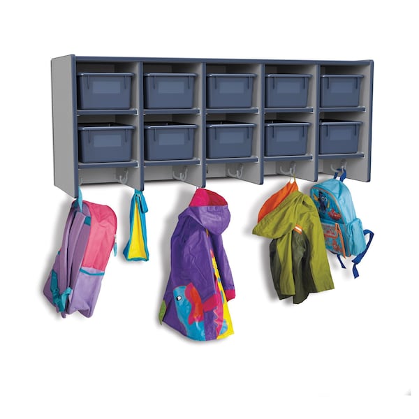Rainbow Accents 10 Section Wall Mount Coat Locker, with Trays, Navy