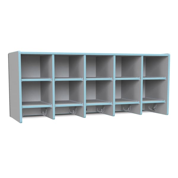 Rainbow Accents 10 Section Wall Mount Coat Locker, without Trays, Coastal Blue