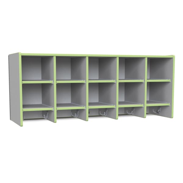 Rainbow Accents 10 Section Wall Mount Coat Locker, without Trays, Key Lime Green