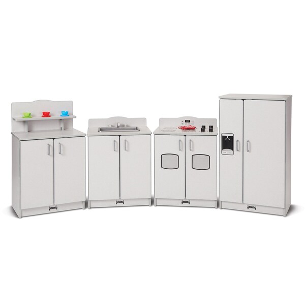 The Rainbow Accents Culinary Creations Kitchen 4 Piece Set in Gray is the ultimate playtime accessory for little aspiring chefs. This beautifully designed kitchen set is crafted with meticulous attention to detail, ensuring hours of imaginative and interactive play. Featuring a sleek gray color scheme, this kitchen set adds a modern touch to any playroom or bedroom. The set includes a refrigerator, stove, sink, and microwave, providing all the essential appliances for a complete culinary experience. Each piece is thoughtfully designed with realistic features, such as turning knobs, a sink with a faucet, and a microwave with a clear door. Constructed from durable materials, this kitchen set is built to withstand the rigors of playtime. The Rainbow Accents Culinary Creations Kitchen 4 Piece Set is not only visually appealing but also promotes creativity, social skills, and fine motor development. Children can engage in role-playing activities, imitating real-life scenarios and enhancing their problem-solving abilities. With its ample storage space and multiple compartments, this kitchen set encourages organization and tidiness. Kids can store their play food, utensils, and other accessories in the various cabinets and shelves, fostering a sense of responsibility and orderliness. Whether your child dreams of becoming a master chef or simply enjoys pretend play, the Rainbow Accents Culinary Creations Kitchen 4 Piece Set in Gray is the perfect addition to their playtime repertoire. Watch as their imagination soars and their culinary skills flourish with this delightful and versatile kitchen set. This item may incur additional shipping charges due to its weight or size.