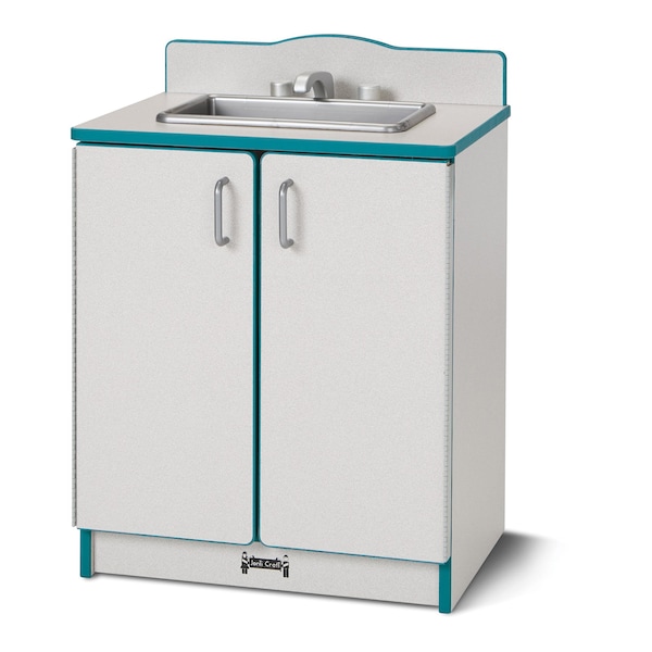 The Rainbow Accents Culinary Creations Kitchen Sink in Teal is the perfect addition to any play kitchen or pretend play area. Designed with meticulous attention to detail, this miniature kitchen sink is not only visually appealing but also offers endless hours of imaginative play for children. Crafted from high-quality materials, this kitchen sink is built to withstand the rigors of playtime. The vibrant teal color adds a pop of excitement to any play area, while the rainbow accents on the edges give it a playful and whimsical touch. The sink features a realistic design, complete with a faucet, a basin, and a drainboard, allowing children to engage in realistic role-playing scenarios. The Culinary Creations Kitchen Sink encourages children to develop essential life skills and promotes creativity and social interaction. Whether they are washing dishes, preparing meals, or engaging in pretend play with friends, this kitchen sink provides a platform for endless imaginative play possibilities. With its sturdy construction and easy-to-clean surface, this kitchen sink is not only fun but also practical. It is designed to withstand the messes and spills that often accompany playtime, making it a durable and long-lasting addition to any play area. Overall, the Rainbow Accents Culinary Creations Kitchen Sink in Teal is a delightful and engaging toy that will inspire children to explore their culinary creativity while fostering important developmental skills.