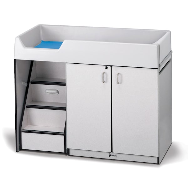 The Rainbow Accents Diaper Changer with Stairs - Left - Black is a versatile and practical addition to any daycare or nursery setting. Designed with utmost care and attention to detail, this diaper changer offers a safe and convenient space for diaper changes, ensuring the comfort and well-being of both the caregiver and the child. Crafted with a sturdy and durable construction, this diaper changer is built to withstand the rigors of daily use. The black color adds a touch of sophistication and elegance to any space, while the rainbow accents bring a playful and vibrant element to the overall design. Equipped with stairs on the left side, this diaper changer ensures easy and safe access for children of all ages. The stairs feature a non-slip surface, providing added security and stability during use. The ample storage space underneath the changer allows for easy organization of diapers, wipes, and other essential items, keeping everything within reach and minimizing clutter. The ergonomic design of the changer promotes proper body mechanics for the caregiver, reducing strain and fatigue during diaper changes. The contoured changing pad is made from soft and comfortable materials, ensuring a cozy and pleasant experience for the child. With its thoughtful design and high-quality construction, the Rainbow Accents Diaper Changer with Stairs - Left - Black is a reliable and practical choice for any childcare facility. It combines functionality, safety, and aesthetics to create a welcoming and efficient space for diaper changes. This item may incur additional shipping charges due to its weight or size.