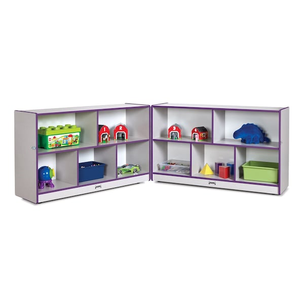 The Rainbow Accents Low Mobile Fold-n-Lock in Purple is a versatile and functional storage solution designed to meet the needs of any classroom or play area. This innovative piece of furniture combines ample storage space with a foldable design, making it perfect for organizing and securing belongings while maximizing floor space. Crafted with durability in mind, this mobile fold-n-lock unit is constructed from high-quality materials that can withstand the rigors of daily use. The vibrant purple color adds a touch of fun and liveliness to any environment, making it an attractive addition to any space. Featuring multiple compartments, this fold-n-lock unit provides ample storage space for books, toys, art supplies, and more. The lockable doors ensure that items are kept safe and secure, giving teachers and parents peace of mind. The low height of the unit allows easy access for young children, encouraging independence and fostering a sense of responsibility. The mobile design of this fold-n-lock unit allows for easy transportation and reconfiguration of the classroom or play area. The sturdy casters provide smooth mobility, allowing teachers to effortlessly move the unit from one location to another. This flexibility enables educators to create dynamic learning environments that can be adapted to suit different activities and teaching styles. With its vibrant purple color, durable construction, ample storage space, and mobile design, the Rainbow Accents Low Mobile Fold-n-Lock in Purple is a versatile and practical storage solution that will enhance any classroom or play area. This item may incur additional shipping charges due to its weight or size.