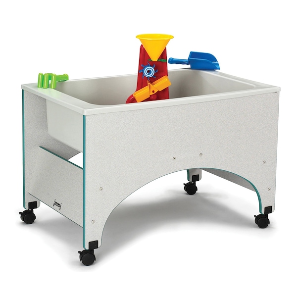 The Rainbow Accents Space Saver Sensory Table in Teal is a versatile and engaging addition to any classroom or playroom. Designed with children's sensory development in mind, this sensory table provides a stimulating and interactive experience that encourages exploration, creativity, and learning. Crafted with high-quality materials, this sensory table is built to withstand the rigors of daily use. The sturdy construction ensures durability and longevity, making it a reliable investment for years to come. The vibrant teal color adds a pop of excitement to any space, creating an inviting and visually appealing environment for children. Featuring a space-saving design, this sensory table is perfect for smaller classrooms or play areas. Its compact size allows for easy placement and storage, without compromising on functionality. The table is equipped with a spacious surface that provides ample room for multiple children to engage in sensory play simultaneously. The sensory table is designed with rounded edges and corners, ensuring the safety of young children during playtime. It also includes a removable lid that doubles as a storage compartment, allowing for easy organization and access to sensory materials. The lid can be securely fastened to prevent spills or accidents, providing peace of mind for both children and educators. With its versatile design, this sensory table can be used for a wide range of activities. From exploring different textures and materials to engaging in water play or sensory experiments, the possibilities are endless. The table's smooth surface is easy to clean, making maintenance a breeze. Overall, the Rainbow Accents Space Saver Sensory Table in Teal is a fantastic addition to any learning environment. Its durable construction, vibrant color, and versatile design make it a valuable tool for promoting sensory development, creativity, and exploration in children.
