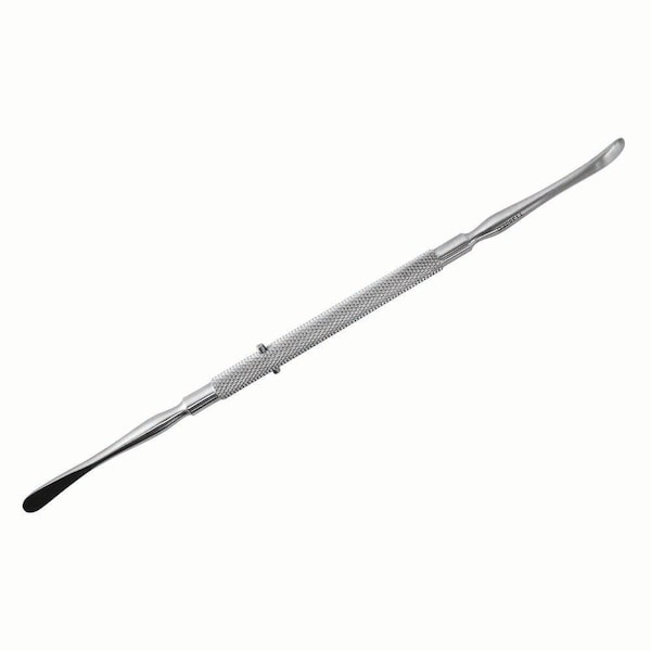Knurled double-ended elevator with curved fine spatula tips. The Freer Elevator is an instrument that can be used as a multipurpose tool in many procedures, although it is primarily used for blunt debulking and lifting periosteum from bones in confined areas.