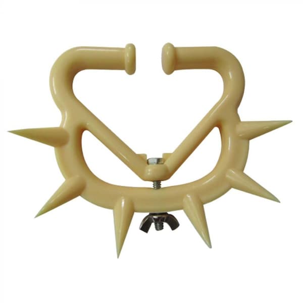Calf Nose Weaner. When a calf is ready to be weaned, these nose pieces are very useful. The device is put in the calf's nose and the thumb screw tightens to hold nose piece in place. Heavy duty plastic X-Large. 4" x 3.5". Beige