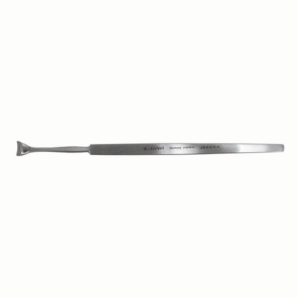 Blunt hand held retractor with varying widths. 16cm (6 1/4").
