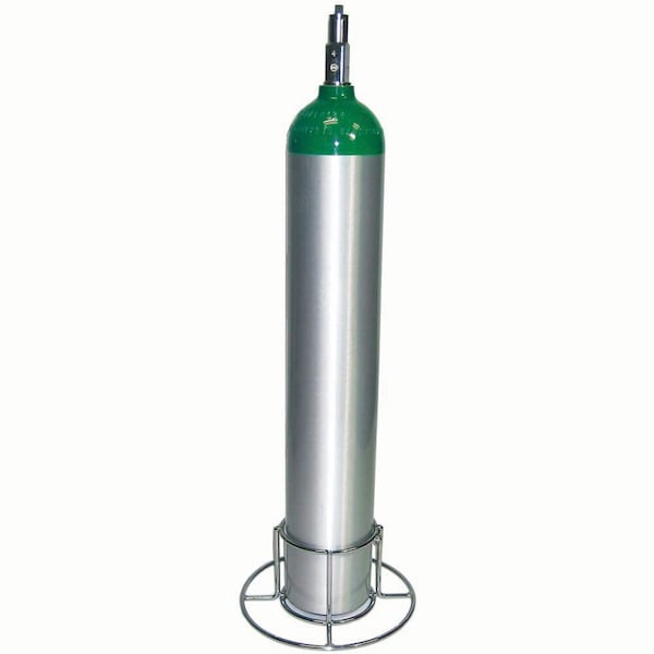 Oxygen tanks are cumbersome and top-heavy items. The danger to clinic personnel from a dropped or toppled oxygen tank can be minimized with proper storage and handling. JorVet offers a number of oxygen tank racks and carts to safely handle the common"H" or"E" cylin- ders used in veterinary facilities. Various regulators and yokes are also available.Single"E" Cylinder Stand. Chrome polished circular stand keeps"E" tank safely upright. 91/2"D x 41/2"H. 71/2 lbs.