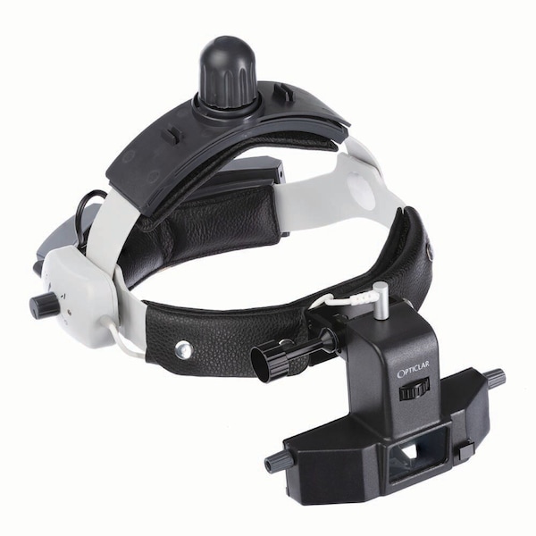 EasyView Binocular Indirect Ophthalmoscope.Leading Ophthalmic institutions agree there was a need for a Binocular Indirect Ophthalmoscope that provided great ophthalmic imaging, whilst being quick, simple and easy to use. The Opticlar EasyView has been designed to meet that need. Features: Lightweight, comfortable headband with rotary crown and nape adjustment Lithium-Ion rechargeable battery system, head mounted for convenience, and including class leading performance True-Tone LED Illumination Reliable light source providing the best image possible Cost Effective Blown bulbs are a thing of the past and running costs are reduced Rotary Dial Aperture Adjustments Large/Medium Spot, Large/Medium Polarized, Green(Red Free)/Cobalt Blue Sliding PD adjustment Illumination mounted brightness control Dust-proof, multi-colored optics Includes wall mount charger, training mirror, and 2D insert lenses Aluminum storage caseSpecs: Charging Time 2.5 hours Running Duration Approx. 8 hours Weight w/Lithium-Ion Cell 540g Weight w/o Lithium-Ion Cell 140g LED Illumination