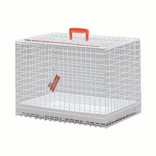 A"must have" for a veterinary practice or cattery. This basket has been tried and tested over many years. It is the perfect carrier for securely containing and transporting cats or other small animals. The 2.5cm (1") square metal mesh is coated with non-toxic PVC for incredible durability and hygiene. All baskets have a top opening panel with a simple rod and eye fastener. The carrier has a big handle for comfortable carrying. A deep removable tray is positioned in base. Carrying baskets come pre-assembled and ready for use. Lightweight: 4.4 lbs or 2 kg Easy to clean Top opening Visualize patient Dimensions: Large (white only) 21.6" (54cm) L x 15.2" (38cm) W x 15.2" (38cm) H