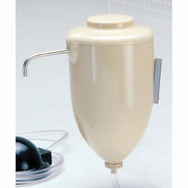 Blue. Remove cover to refill, capacity 28 fluid oz. (828 ml). Includes wall bracket mount for easy detachment and cleaning. Complete with 6ft (2 meter) medical grade PVC tubing.