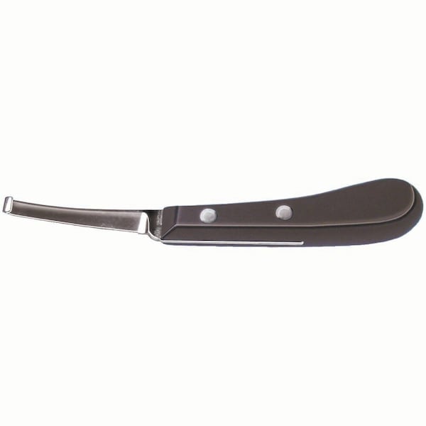 Hauptner Hoof Knife. For the veterinarian who wants the very best. Small curl, ebony handle, right or left curve. Blade 3/8" W x 21/2"L. Left hand