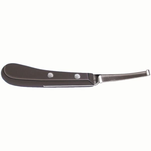 Hauptner Hoof Knife. For the veterinarian who wants the very best. Small curl, ebony handle, right or left curve. Blade 3/8" W x 21/2"L. Right hand
